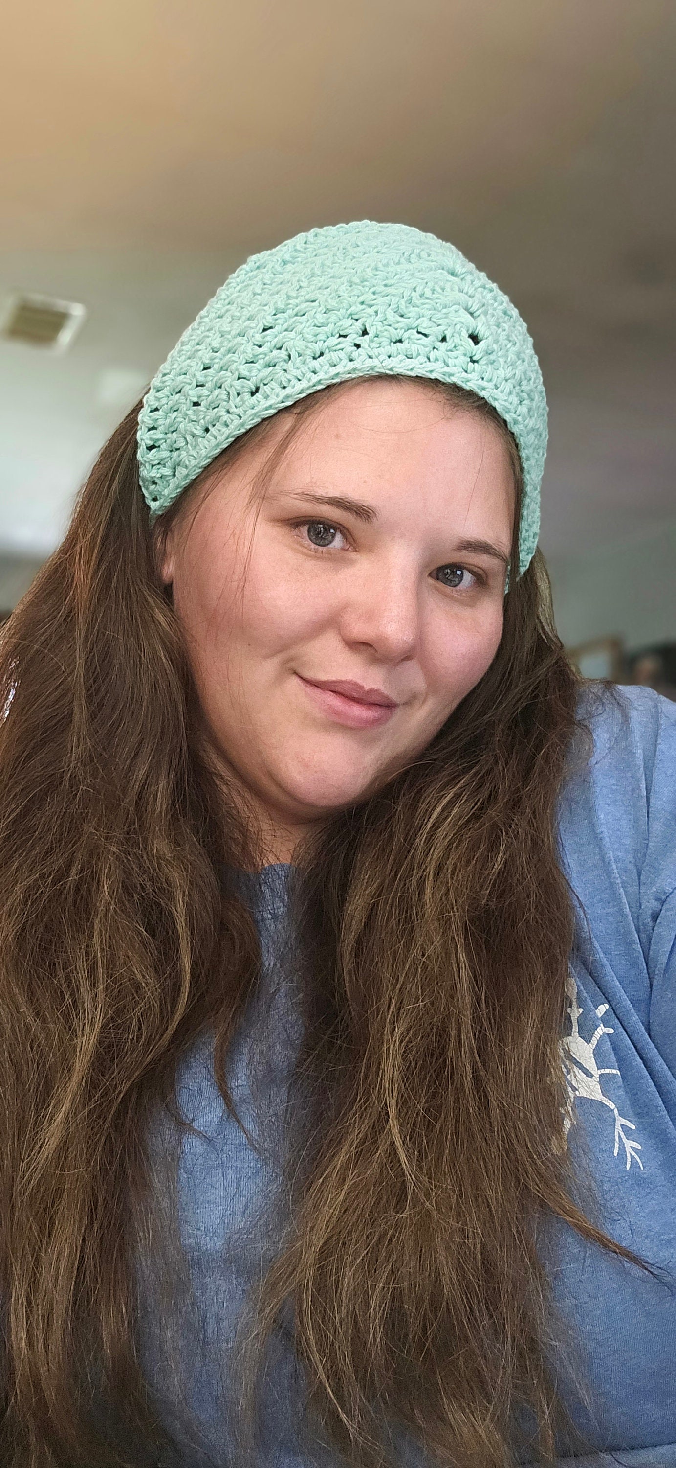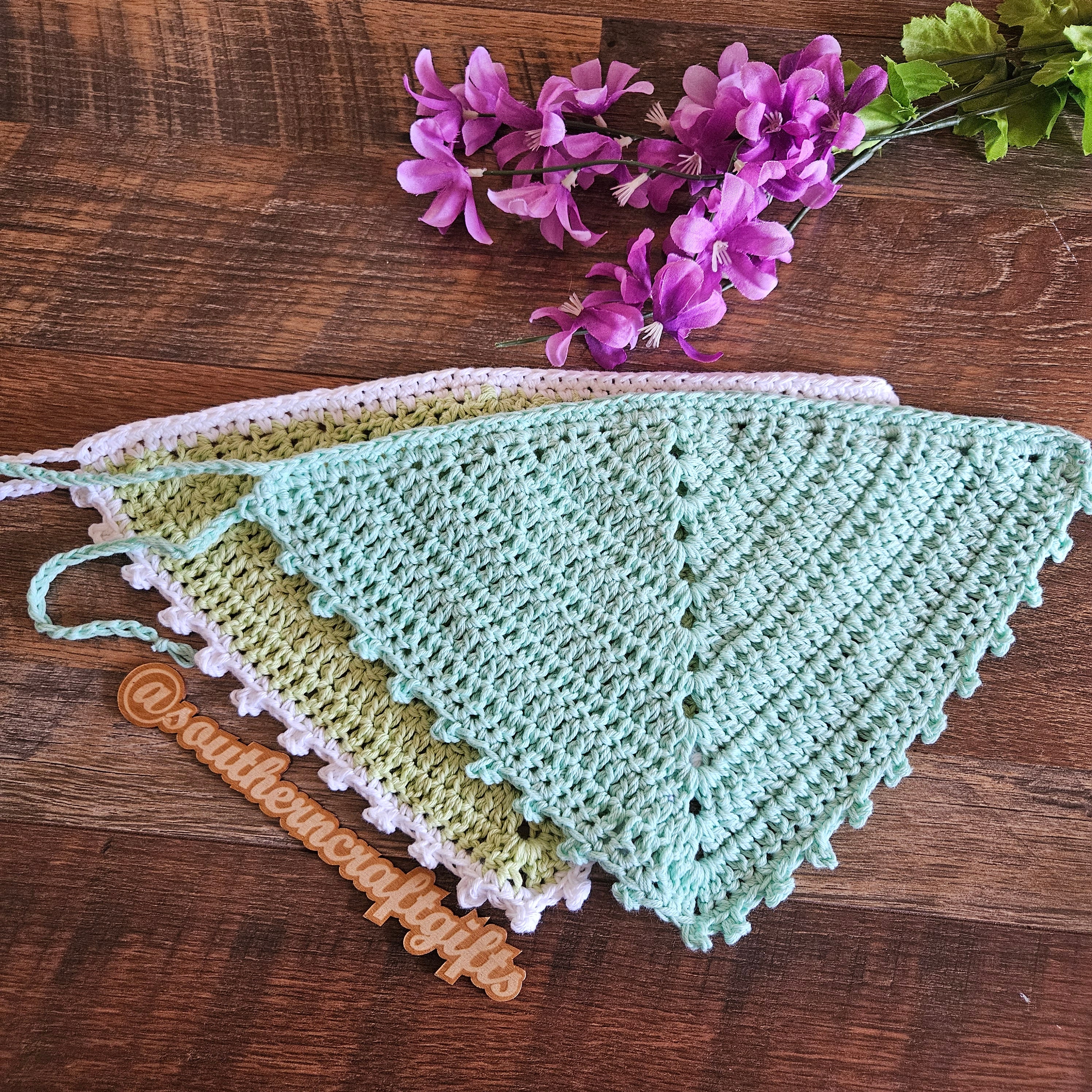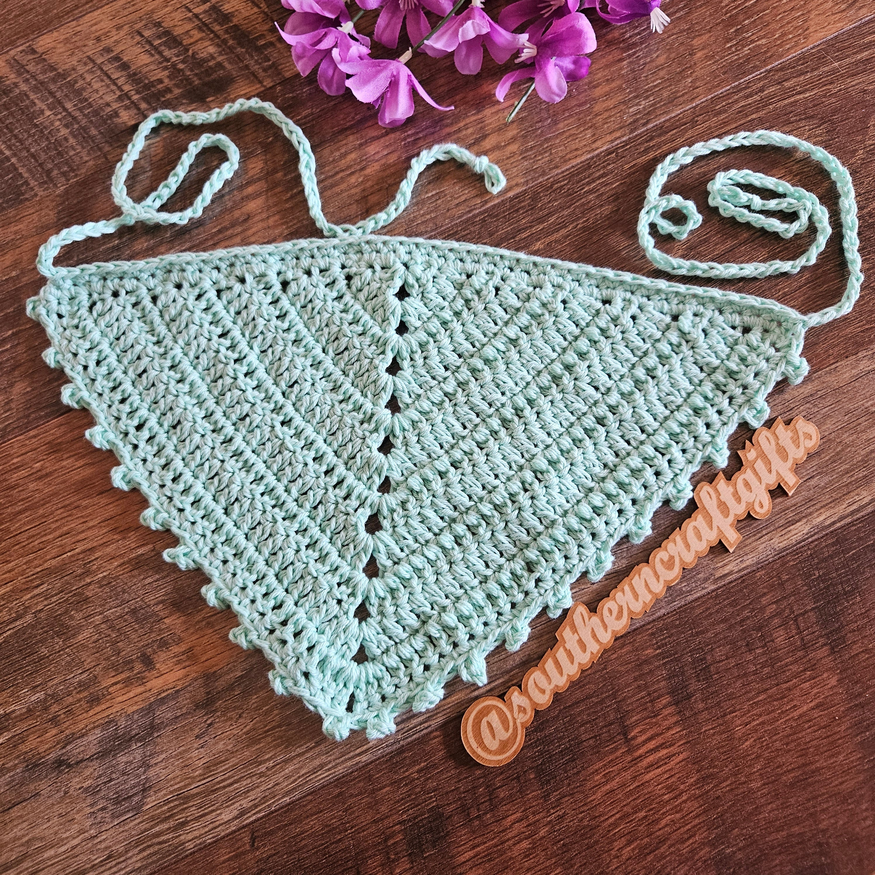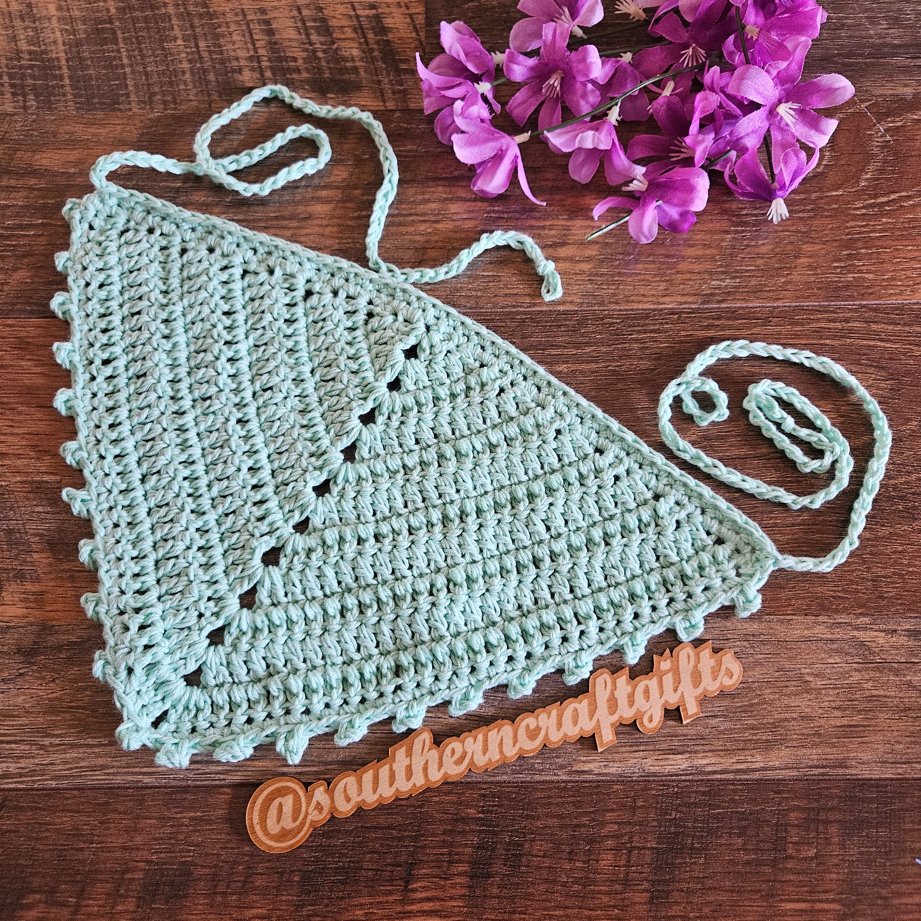 Bandana is hand crocheted by me with 100% high quality cotton yarn.