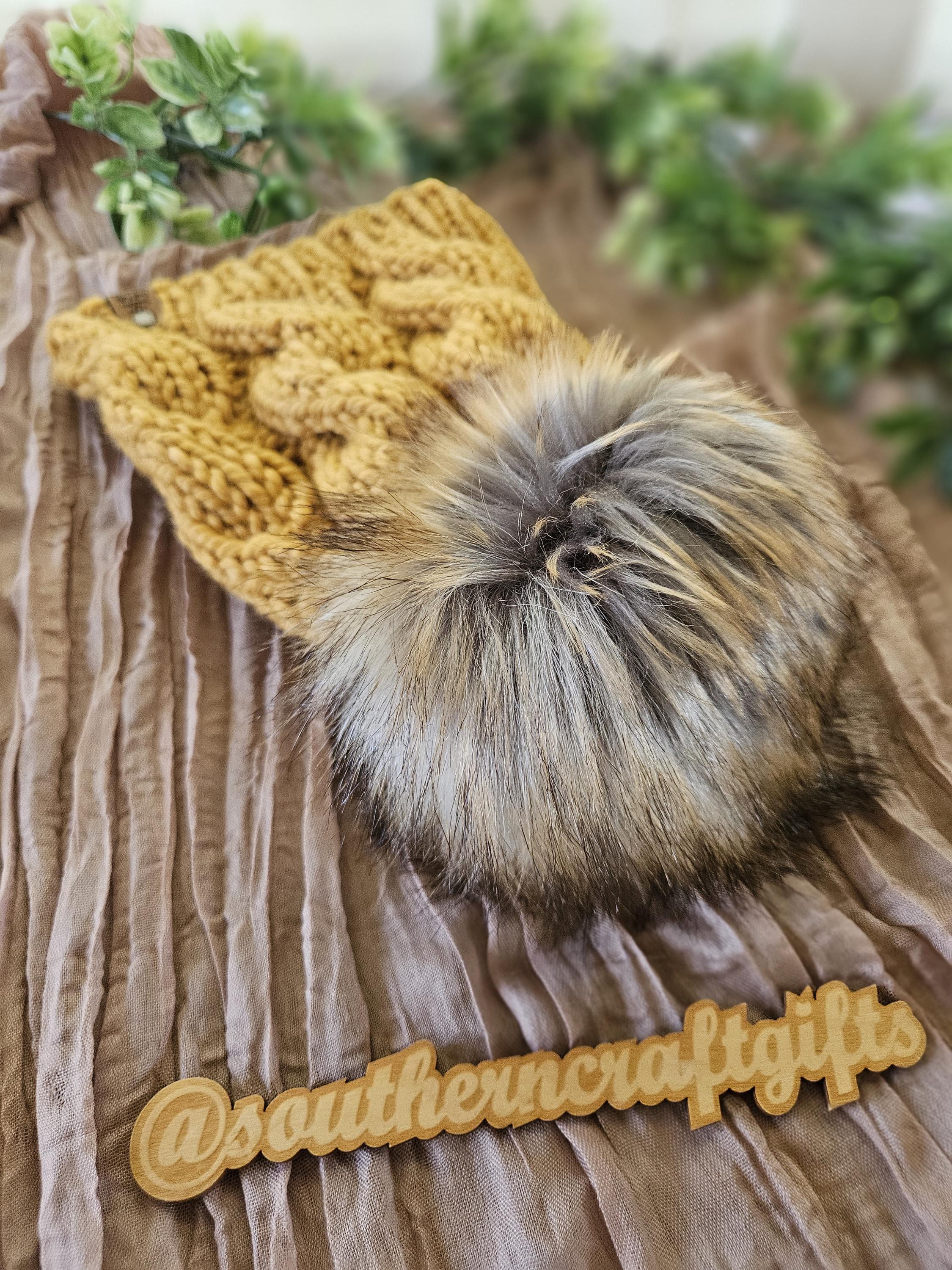 Removable faux fur pom pom attached by a secure string.