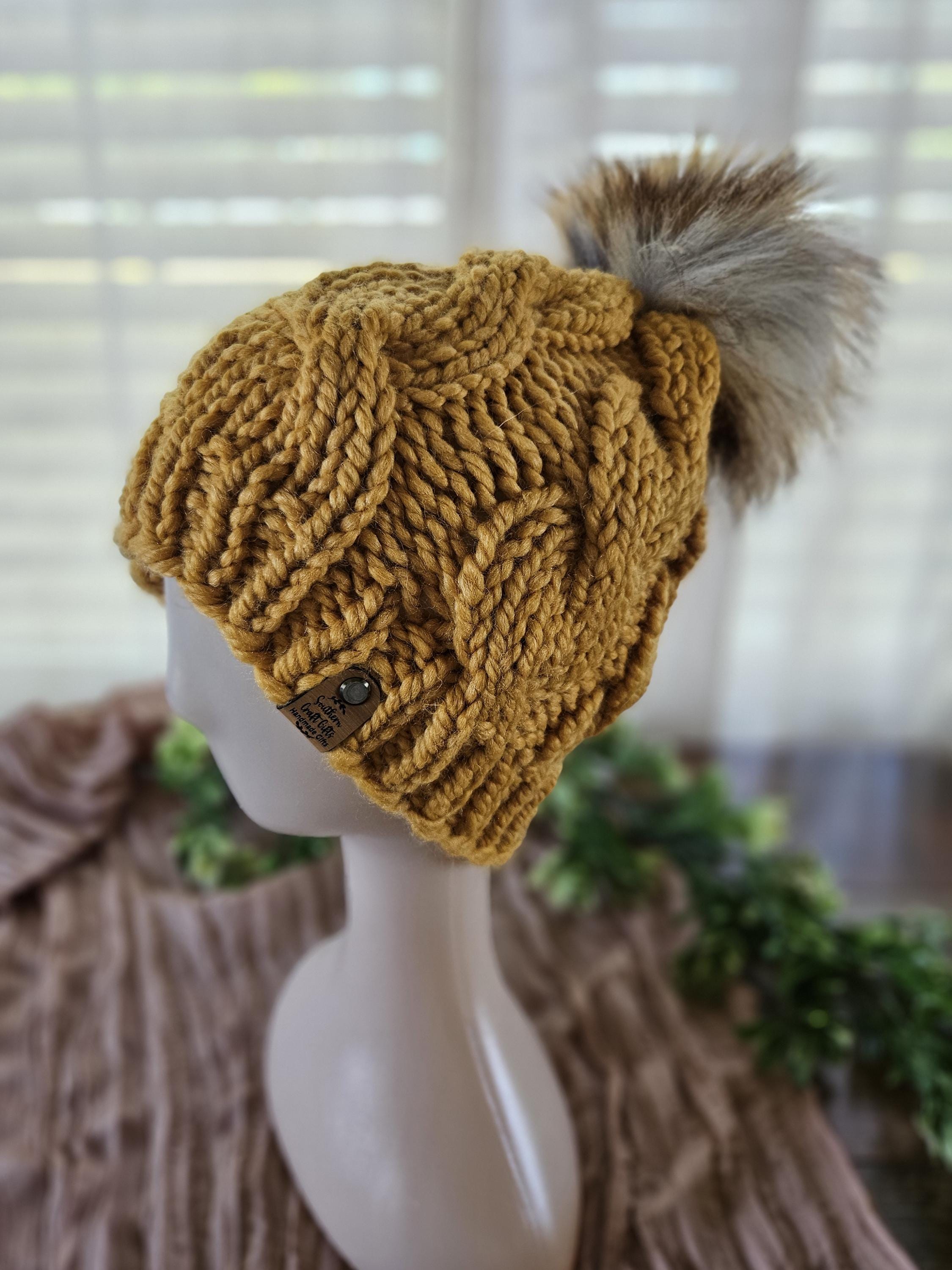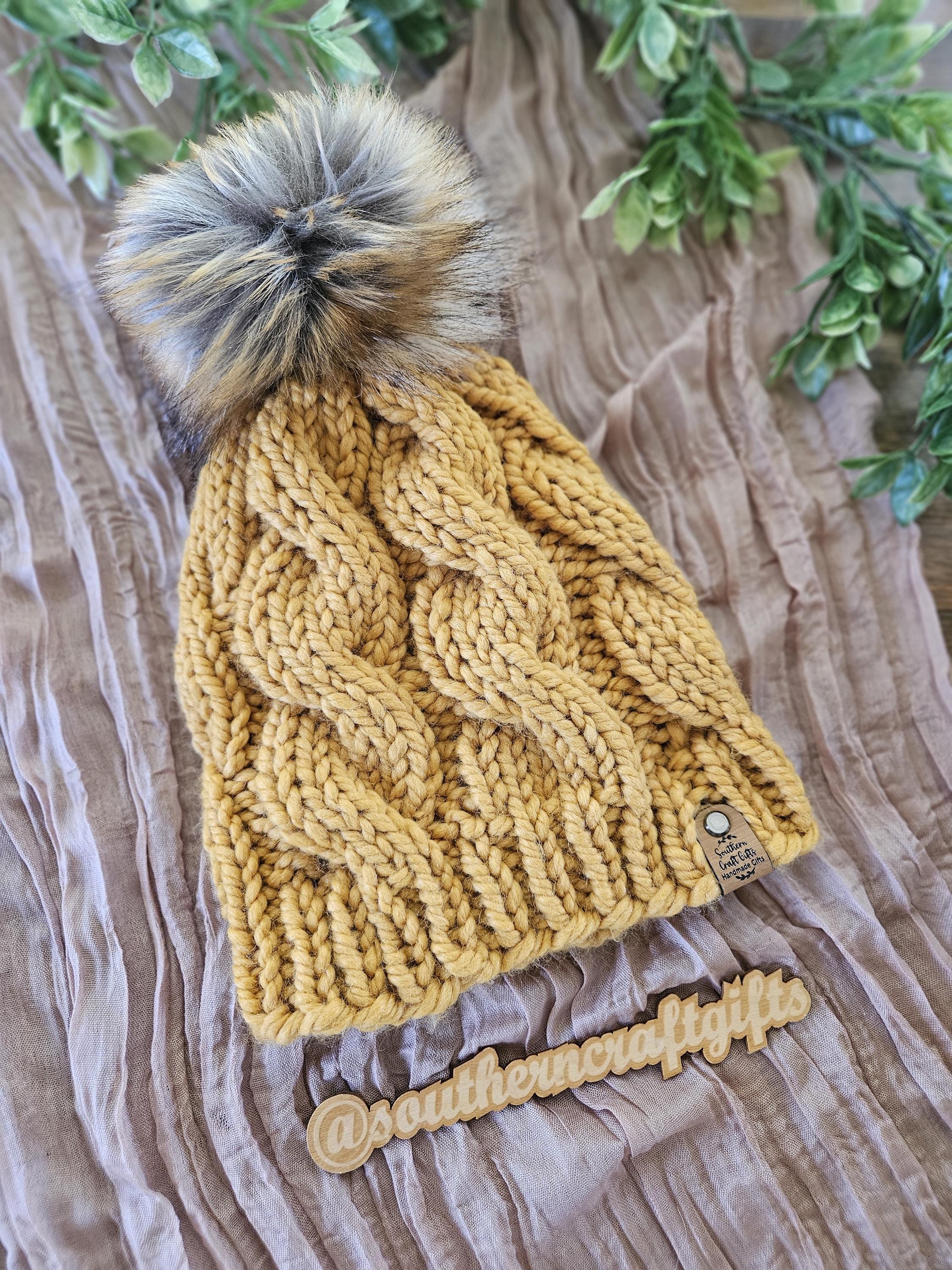 Handmade using the Chunky Cable Beanie pattern by WeirdSheep